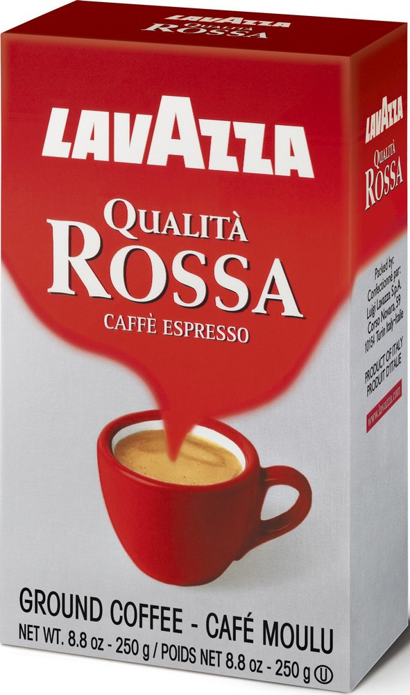 Кава Lavazza Qualita' Rossa — бестселер продажів італійської кави для домашнього приготування в усьому світі. Зерна африканської робусти дають міцність і шоколадний аромат, натуральна арабіка з бразильського нагір'я надає насиченості та м'якості. Обсмажуючи ці зерна разом, Lavazza створює смак оксамитової сенсації. Кава Lavazza Qualita' Rossa — це ідеальний напій для сніданку, оскільки він чудово поєднується з молоком, сухариками, булочками, печивом. Цей сорт кави добре готуватися в домашніх і професійних кавоварках еспресо або в кавоварках Mokka. Арабіка 70%-Робуста 30% 250 g