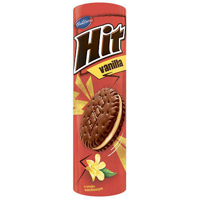 Печиво HIT Vanilla — є смачним хрустким, ароматним печивом, створеним на основі високоякісного бісквітного тіста. Завдяки вишуканій, елегантній начинці, виготовленій з оригінального ванільного крему, цей кондитерський виріб вирізняється витонченим, мяким смаком. Представлений продукт чудово поєднується з чаєм, кавою, молоком або будь-яким іншим напоєм. Печиво стане незамінним у поїздках, подорожах, на прогулянці у звязку з тим, що зможе швидко вгамувати відчуття голоду. Також ці смачні ласощі можна запропонувати гостям, приходом яких став несподіванкою, і ви не встигаєте спожити свій коронний торт.