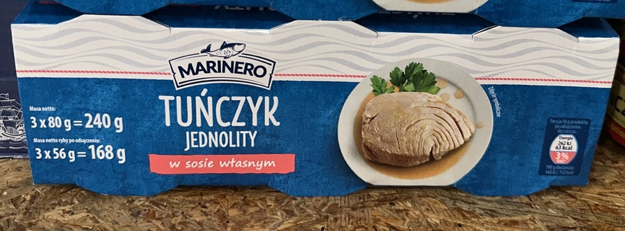 Тунець у власному соку Marinero Tunczyk Jednolity w Sosie wlasnym має ніжну консистенцію і приємний морський аромат. Найчастіше використовується для додавання в салати, для пасти з вершковим соусом і піци. Об'єм — 1 баночка 80г нетто (56г чистої ваги)
