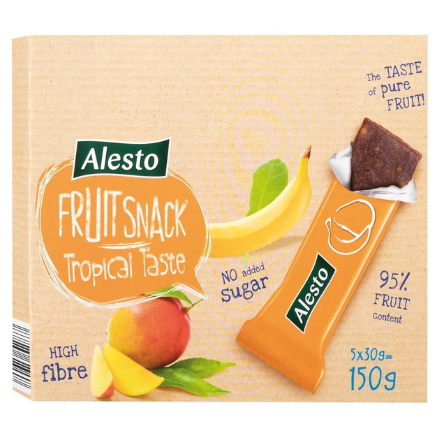 Alesto Fruit Snack - це задоволення від смаку, оскільки він складається з природних фруктів і містить фруктову пасту з висушених фруктів. Головне, що в композиції немає цукру, але його відсутність не вплинула на смак, оскільки цей смаколик складається з добірних сушених фруктів.