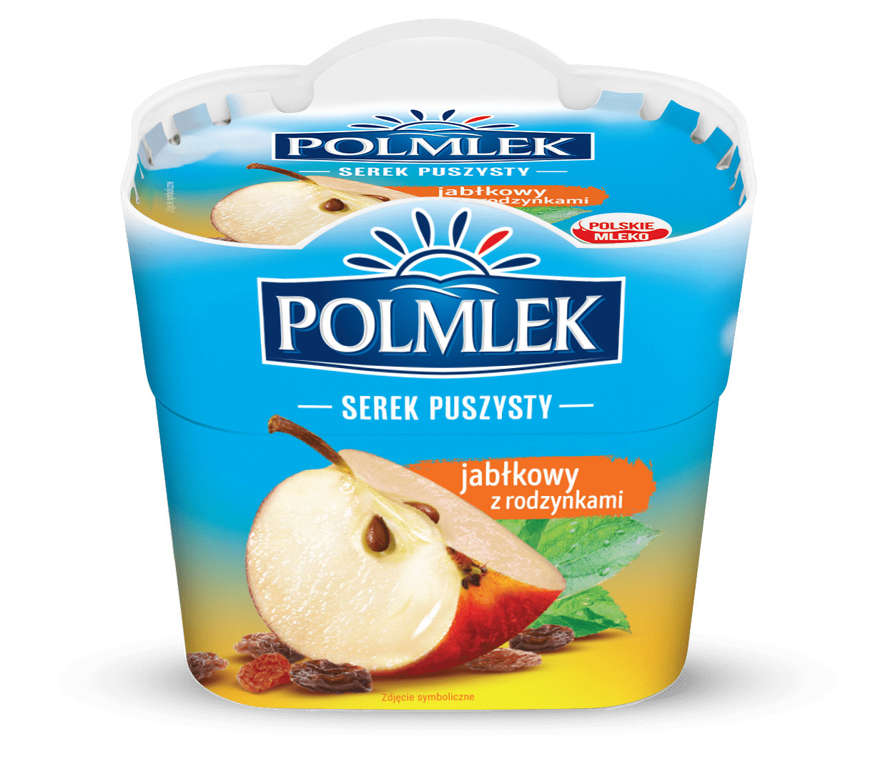 Десертний вершковий Сирок з смаком Яблука та родзинками Polmlek Serek Puszysty Orzehovy. Густий кремовий продукт найвищої якості. Призначений для безпосереднього споживання та рекомендований, як добавка до мюслі, фруктів або компонентів холодних десертів, можна намазувати безпосередньо на шматочок мякого свіжого хліба.
