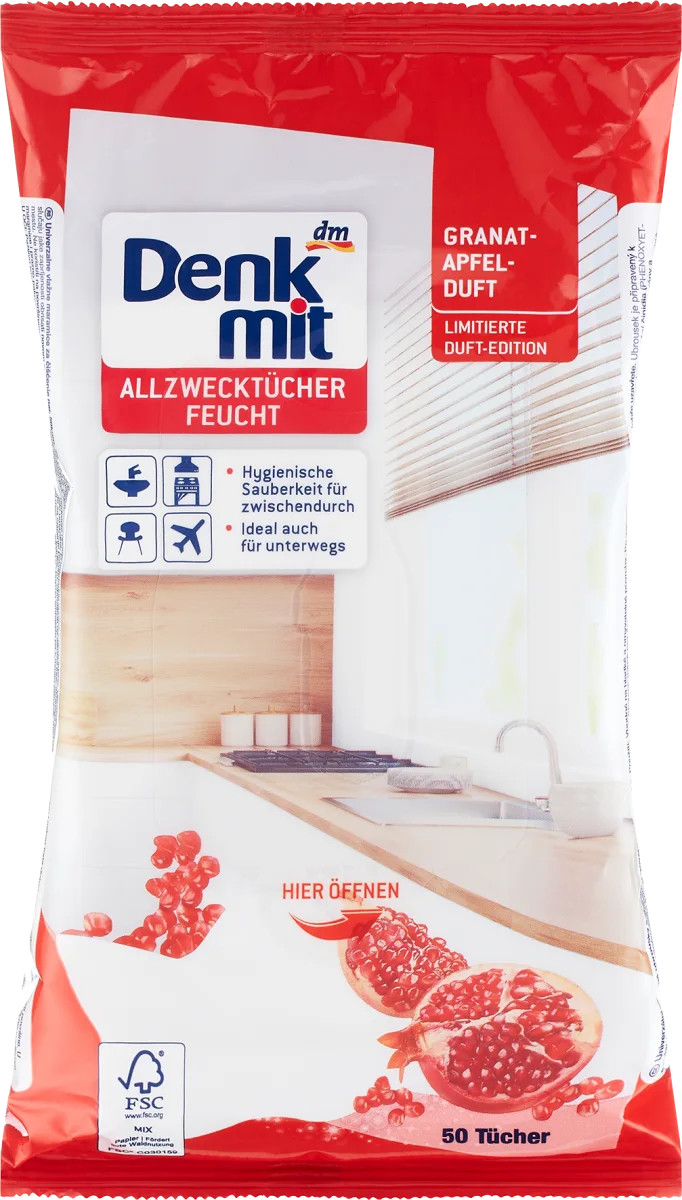 Серветки для прибирання Універсальні Denkmit Allzwecktucher Granat&Apfel ДенкМіт Вологі з ароматом Граната і Яблука 50шт