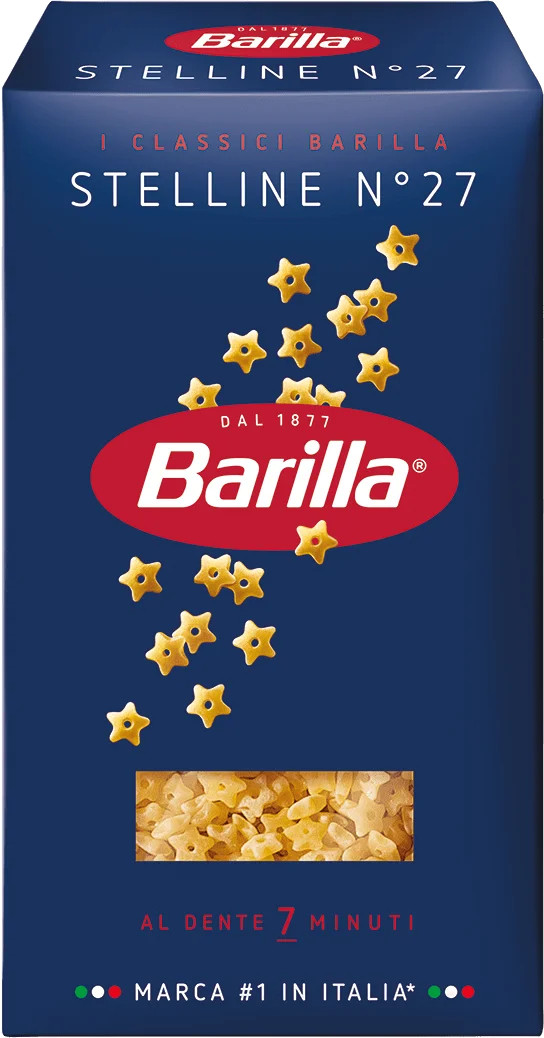 Крихітні зірочки з дірочкою посередині - ця практична і швидка в приготуванні паста створена для того, щоб пробуджувати уяву малюків, в очах яких ці зірочки часом набувають найнесподіваніших обрисів. Паста Barilla Stelline ідеальна для приготування супів, але також добре поєднується з кремовими соусами.