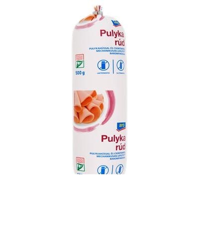 Інгредієнти: м'якоть індички, вода питна, жир птиці, м'ясо індички: 15%, харчова сіль, крохмаль, суміш спецій, борошно з насіння гірчиці, спеції, емульгатори, підсилювач смаку, ароматизатори, декстроза, екстракти спецій, м'ясо індички механічної обвалки: 35%, механічна обвалка курячий жир: 15% , індичий і курячий жир , картопляний крохмаль , декстроза , стабілізатор (трифосфати) , антиоксиданти (аскорбінова кислота, аскорбат натрію) , барвник (кармінова кислота) , консервант (нітрит натрію).