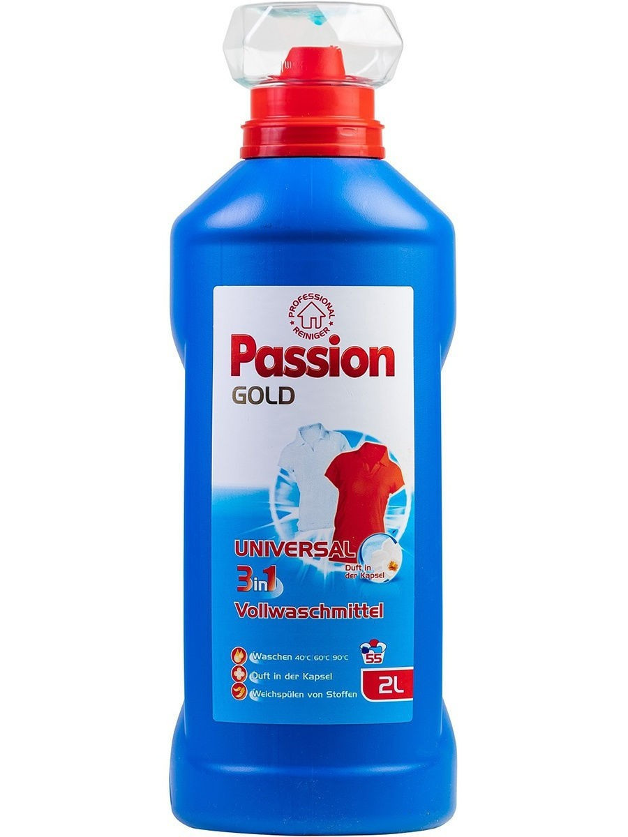 Гель для прання Універсальний Passion Gold Universal VollWaschmittel Professional 3in1 Пашен Голд 50прань ковпачок Дозатор 2000мл