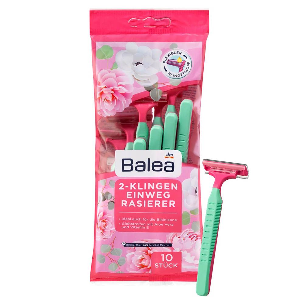 Жіноча одноразова бритва 2 леза Balea 10 шт Кількість - 10 станків. Одноразова бритва з двома гострими лезами. Гнучка головка. З протиковзкою ручкою. Забезпечує ретельне гоління.
