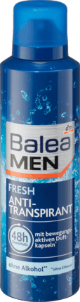 Дезодорант-спрей свіжість Balea fresh Deospray, 200 ml Дезодорант-спрей свіжість Balea fresh Deospray, 200 ml Balea Man Deospray Fresh: - Дезодорант-антиперспірант з освіжаючим і ефектом. - Ефект на 48 годин. - Не містить спирту. - Протестований дерматологами. Вага:200ml